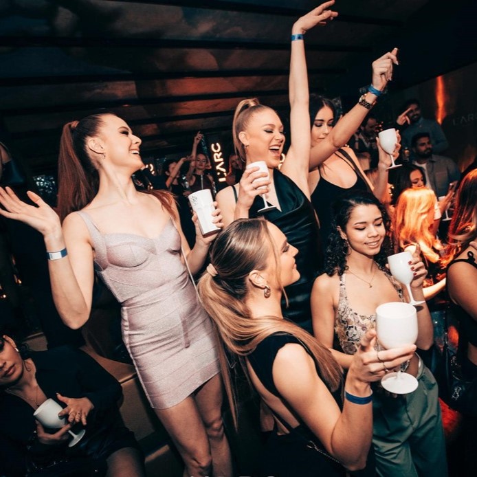 To elevate your night, L'Arc Paris offers a premium bottle menu including Dom Pérignon, Cristal, Armand de Brignac, alongside a curated selection of top vodkas, whiskies, and fine cognacs. The club provides personalized table service, a warm welcome, and an attentive team ensuring you can enjoy your night effortlessly.